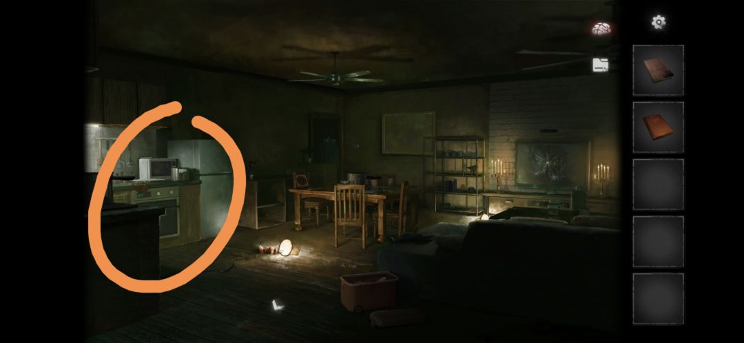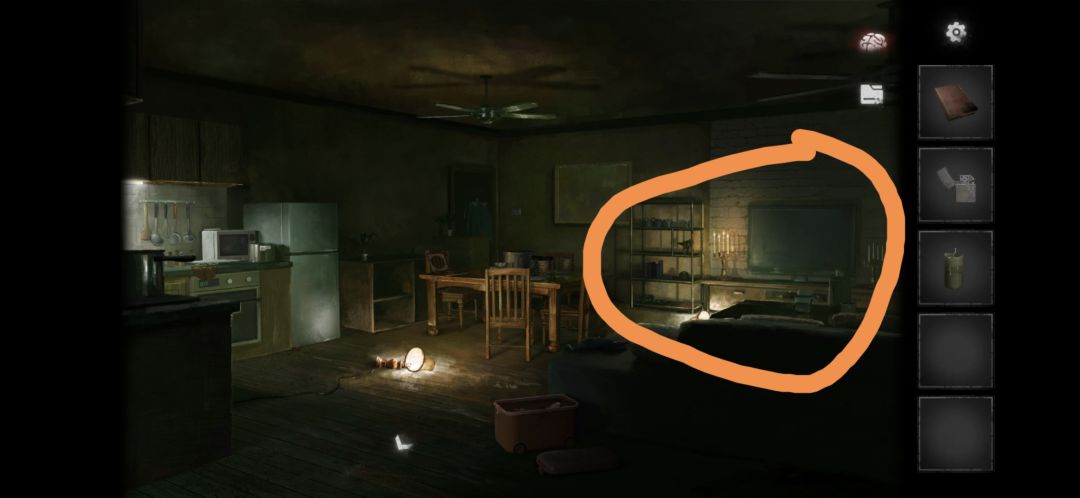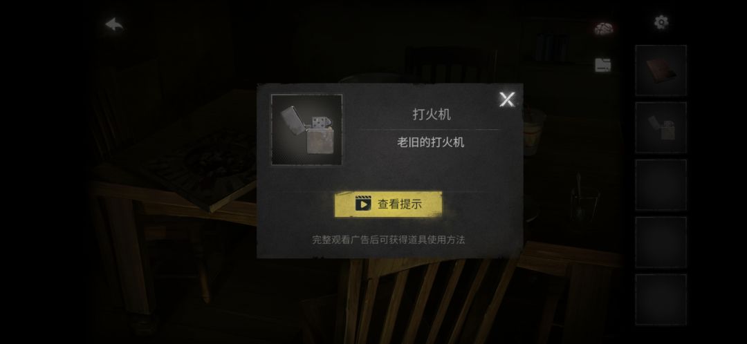 回到尽头房间点击餐桌,拾取打火机