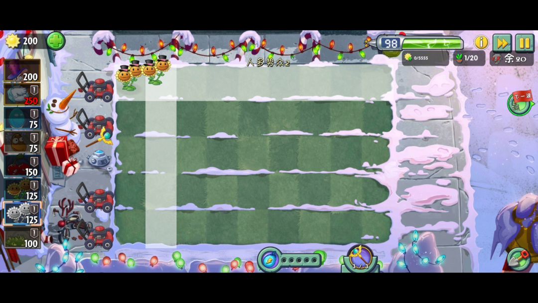 用冰龙草加全息坚果把僵尸堵在门口防止骑士僵尸冲锋,第1次帐篷的话,不要快速清理掉,先完成帽子菇的任务,第2次帐篷是僵尸鸡用地刺就可以解决,因为需要刷阳光所以用冰龙草在24路堵住第3次帐篷的小鬼,争取更多的时间刷阳光。