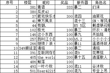 活动的获奖名单来啦,让我们一起来看一下本次有哪些侠士中奖了吧,大家请务必记得参与后续活动时直接留言自己的区服角色名,以便我们后续发奖统计。