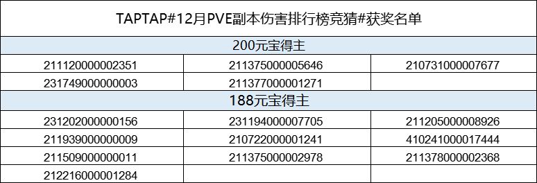【已开奖】12月PVE副本伤害排行榜竞猜