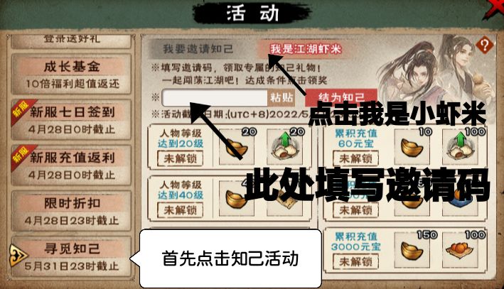新区萌新开局少走弯路攻略!!! 嗯,先打个广告,活动―江湖小虾米填邀请码 AAFYRT。