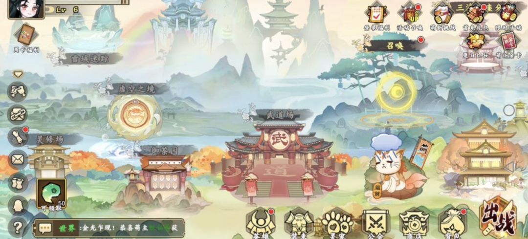 开局走流程,大概2分钟,走完最后一步黑皮(那个女生)说萌主初来乍到,有个消息告诉你,这时候就结束了,然后去限时活动领召唤卷轴,在月度,每周里面领取免费福利,唠叨一句,虽然无双充值项目多,但0氧可以实现