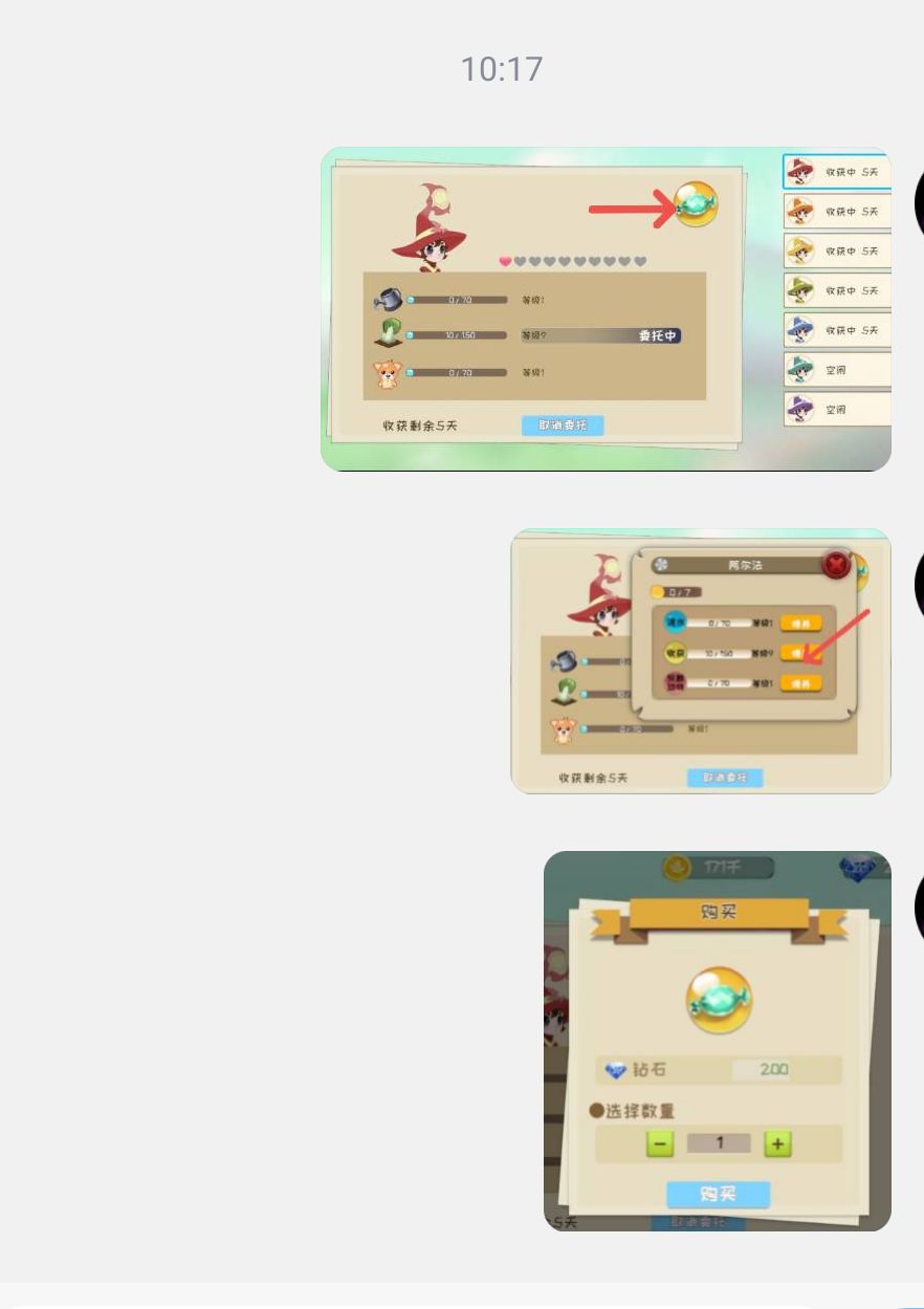 当前测试版本(三测)送了很多钻石,现实里:每天登录也有送钻石,每天免费送两个糖果,每天自己可以买4个(100×2+150×2=500钻,每两次购买就会加价,每天重置价格)。