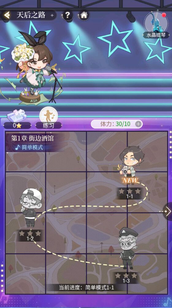 天后之路活动一共有18个章节故事,在4×4的格子中,每次滑动所有道具只能上下左右移动一格。简单模式中每次挑战关卡消耗1点体力,困难模式中每次挑战关卡消耗2点体力,练习模式挑战时不消耗体力。