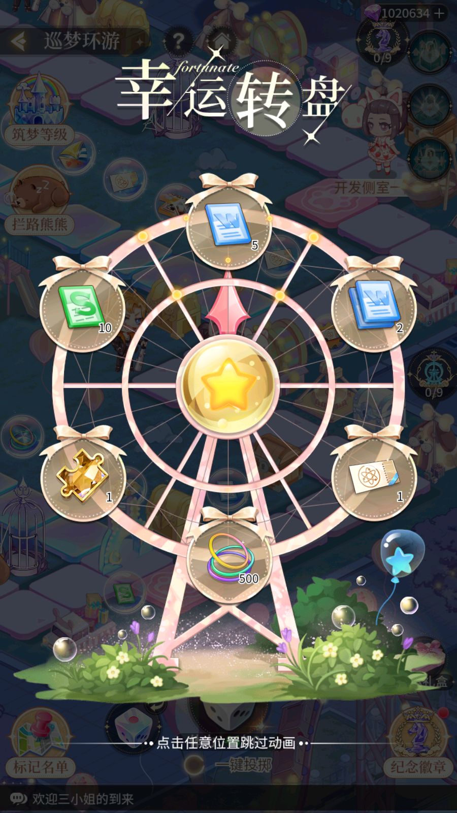 幸运转盘:停留在幸运转盘格子,可使用幸运转盘,并获得对应奖励。