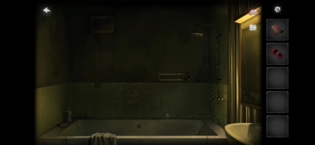 9.到厕所镜子前,水龙头左边用钳子拧开,出现女鬼,然后背后女子画像倒地,获得黄色书。