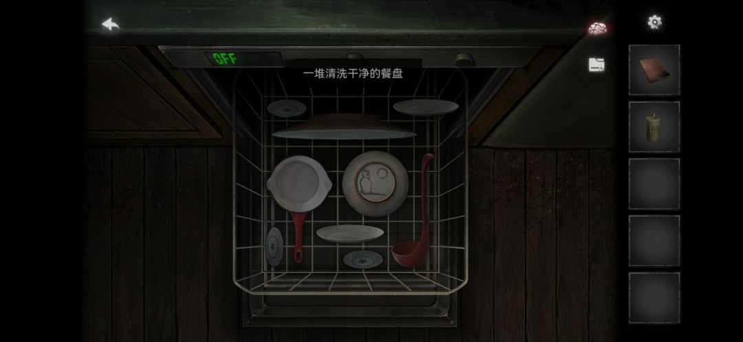 4.走廊的尽头是客厅。来到厨房,获得脏碗,将起放入洗碗机获碗底图案(圆形对应的)