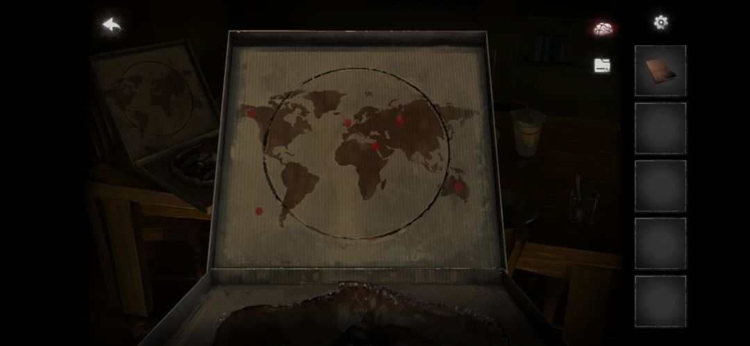13.来到客厅的餐桌,把圆形纸板放入披萨盒上,获得世界地图的线索3。