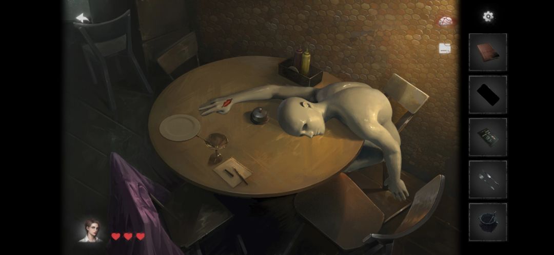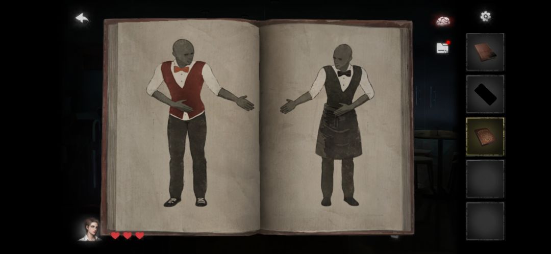 5.吧台上有菜单。每个桌子跑一跑看一看,获得刀叉。让小男孩、吧台男人三个人点好菜(肉汤在另外一桌,假人喝完趴下,手上出现嘴唇印)。