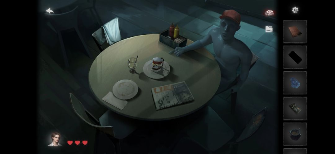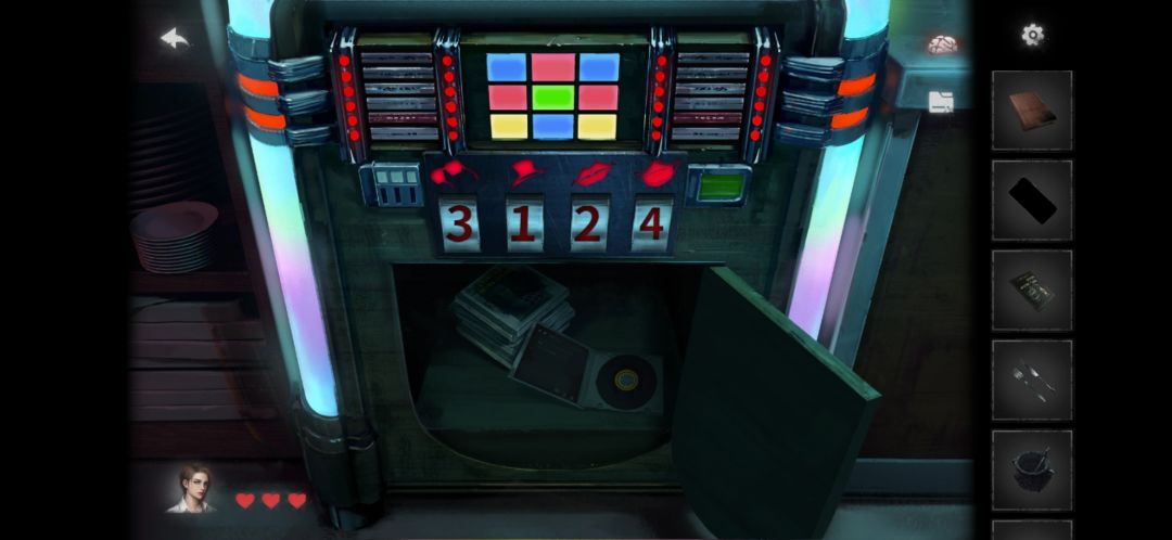 9.根据餐厅四个客人的手势得出,吧台里机器的密码3124,得到唱片。注意机器上的图案(线索3)