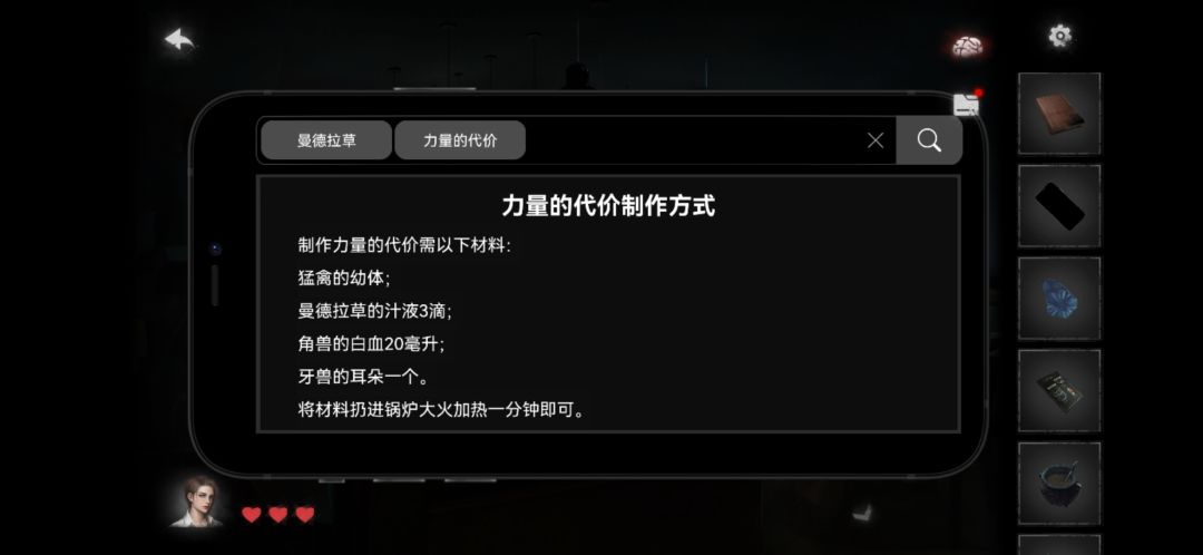 15.根据搜索出来的做法,在吧台上做出力量的代价,并给男人喝下,获得掉头。