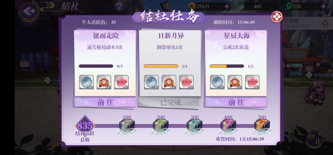 结社任务秘境副本,早上就打完了,但打开结社页面并没有完成