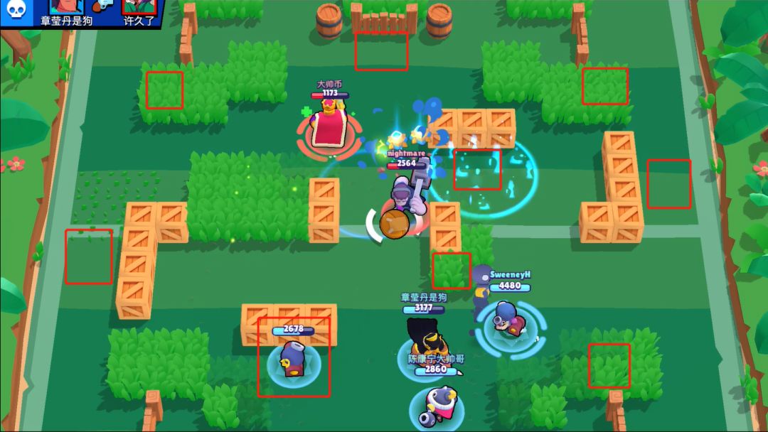 满级后潘妮的炮台有3920的血量,可以顶得住大多数英雄的三下普攻,而且炮台在不被摧毁的情况下可以在场上持续输出,虽然打不中持续走动的英雄,但是逼迫敌人不停的跑动,并把“老阴逼”从草丛里逼出来,否则就会被炮击1600伤害,是一个非常有威胁性的炮台。这里稍微介绍下炮台的放置位置,千万不可贴脸,放后方就可,最好放在箱子的后面或草丛中,可以有效的防御敌方的攻击: