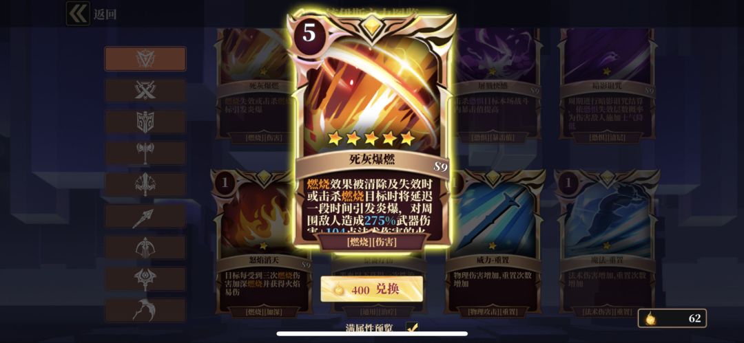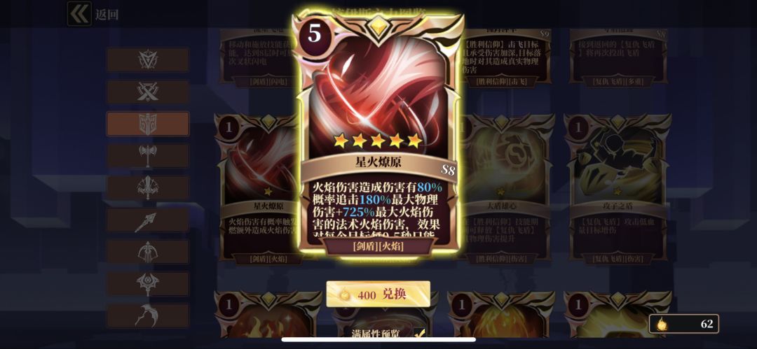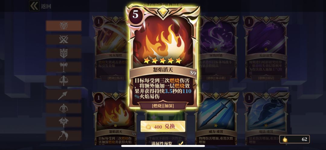 有高星的可入卡牌里,最高可以加80%火焰百分比