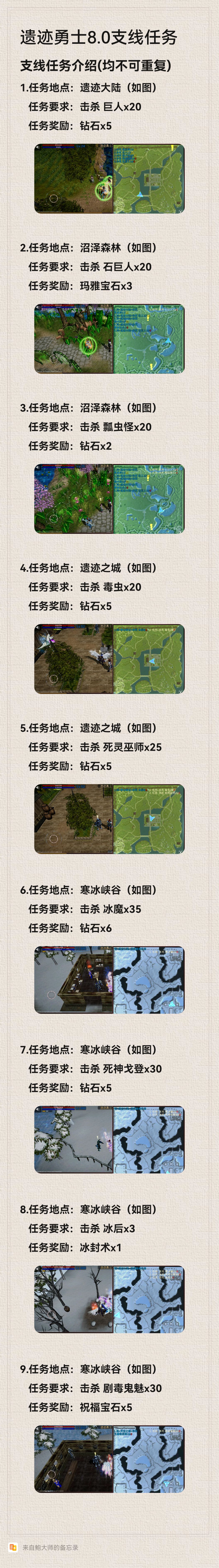 遗迹勇士3D·支线及特殊任务图解。