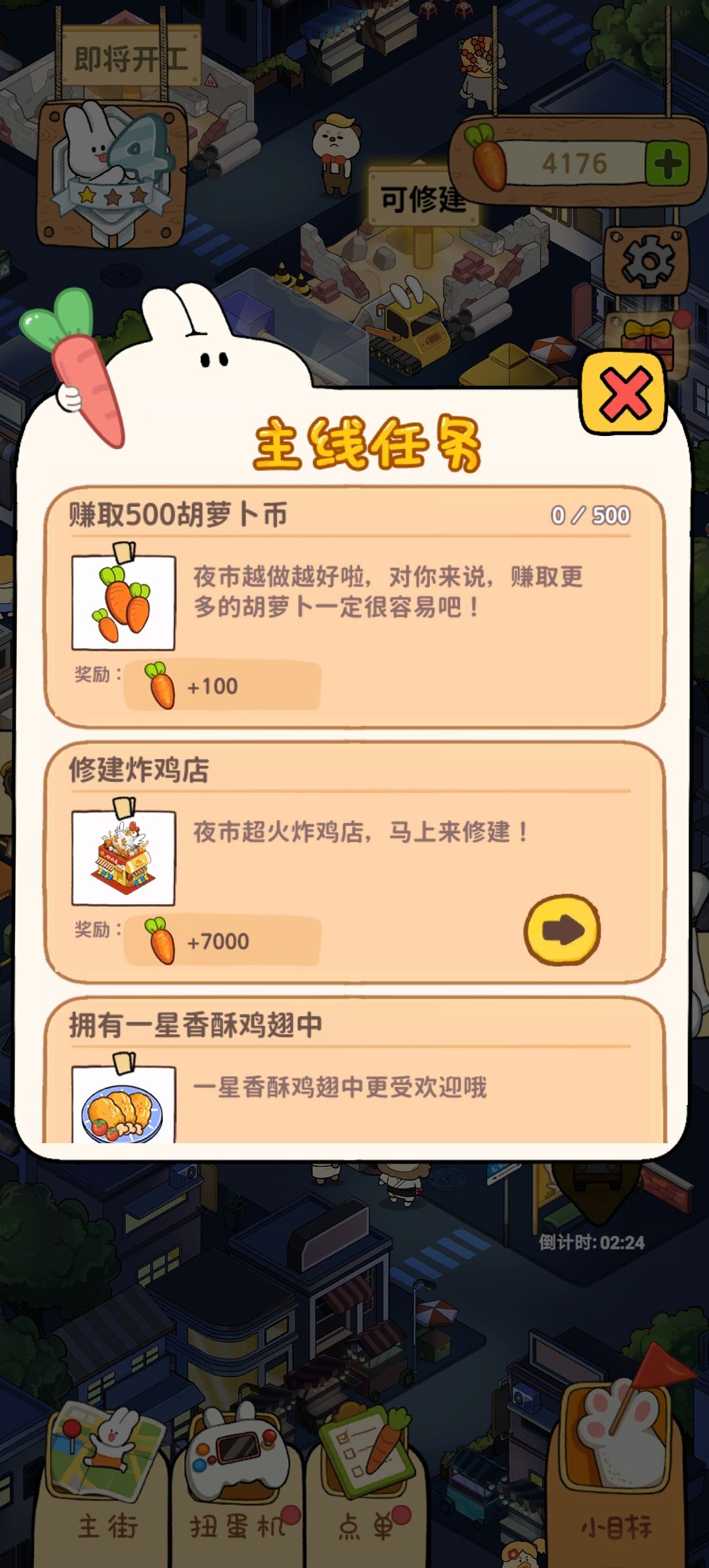 2.出现了赚取100胡萝卜的任务