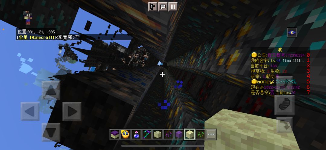 反作弊:个人十分痛恨外挂,所以添加了反作弊插件,功能有防生存飞行,非法使用指令,恶意崩服,防止矿透,非法获取物品,这边展示矿物透视视角