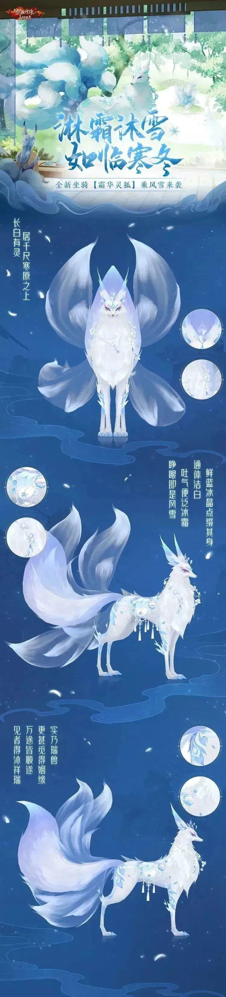 没错,这就是我们即将上线的全新坐骑·霜华灵狐,沐风踏雪,携一身长白冰晶而来,相当美丽又祥瑞的灵兽哦!
