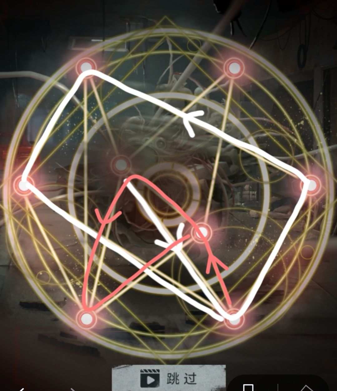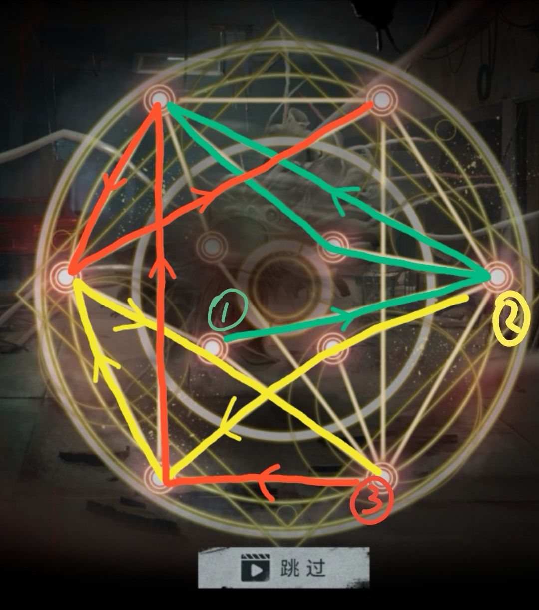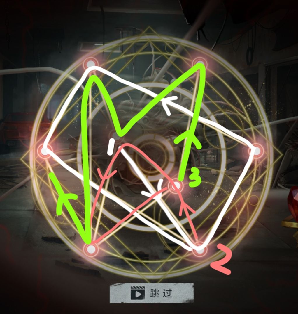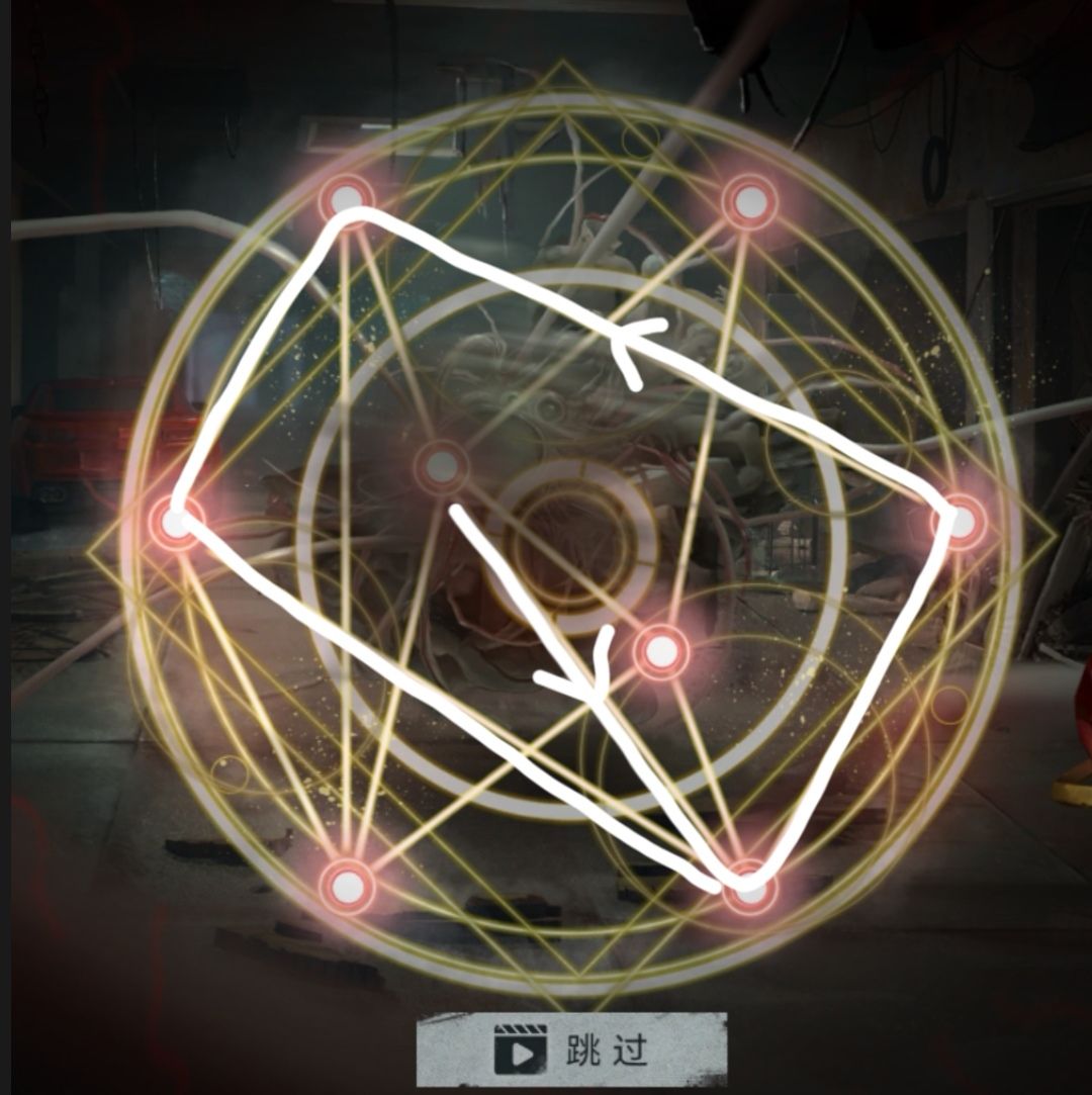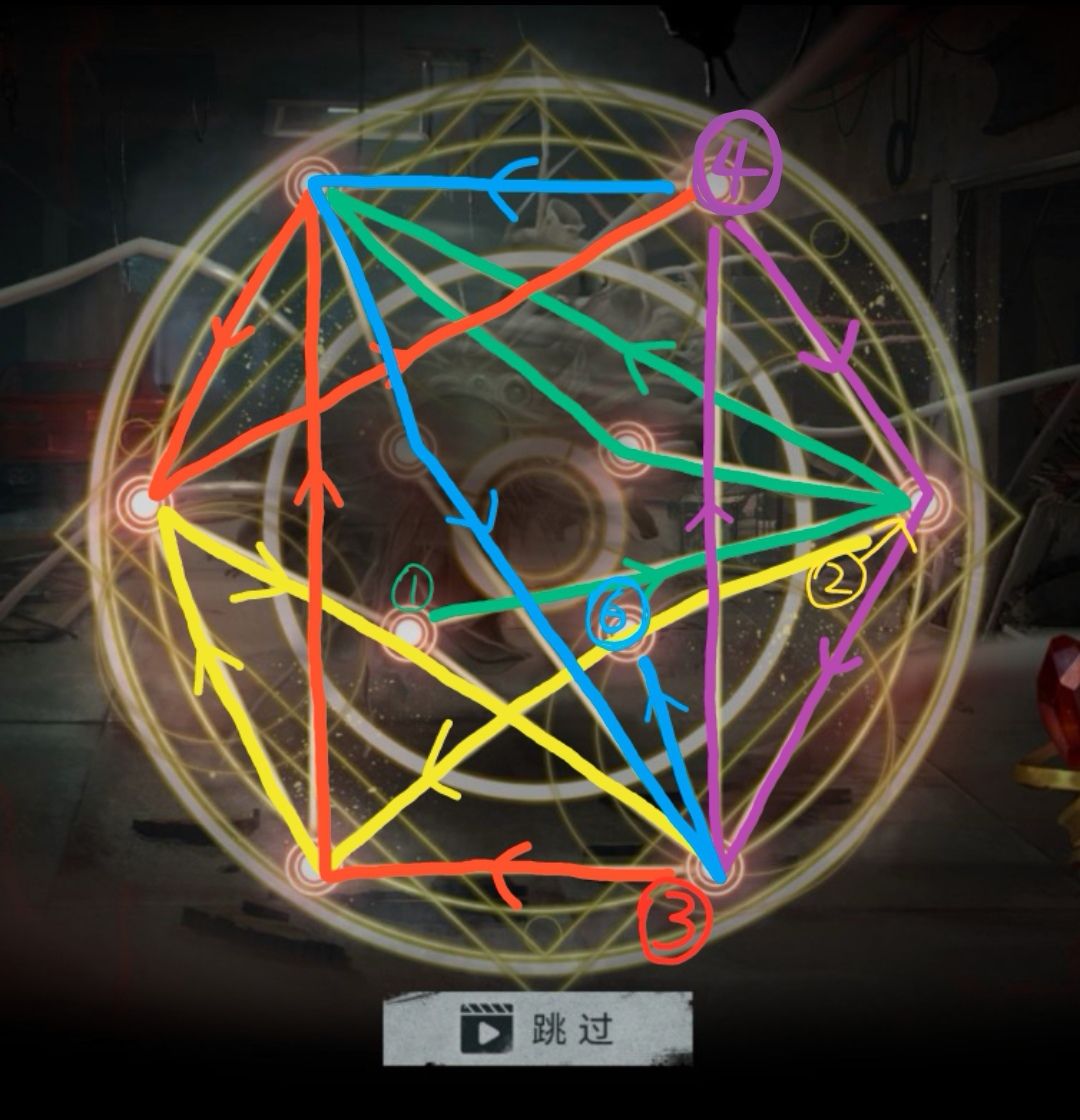攻略用处:第五章,卡洛琳用手杖对波飞天意面(×),需要玩家在短时间内一笔画出魔法阵,共三图,三图时间共享,路径不能重合,对资深笨蛋玩家来说还挺难的。