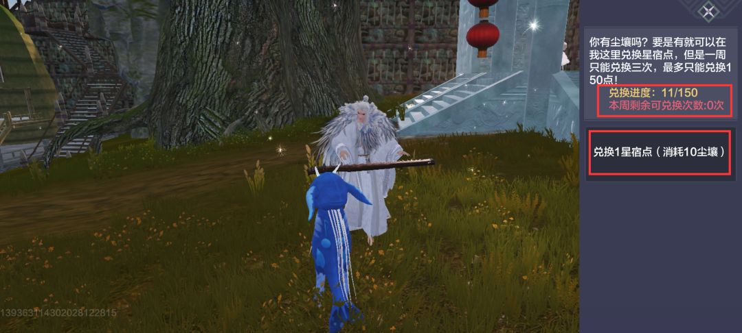 旅者每周可在主城的太子长琴处用尘壤兑换3次星宿点,每次消耗10点尘壤,最多可获得150点星宿点。