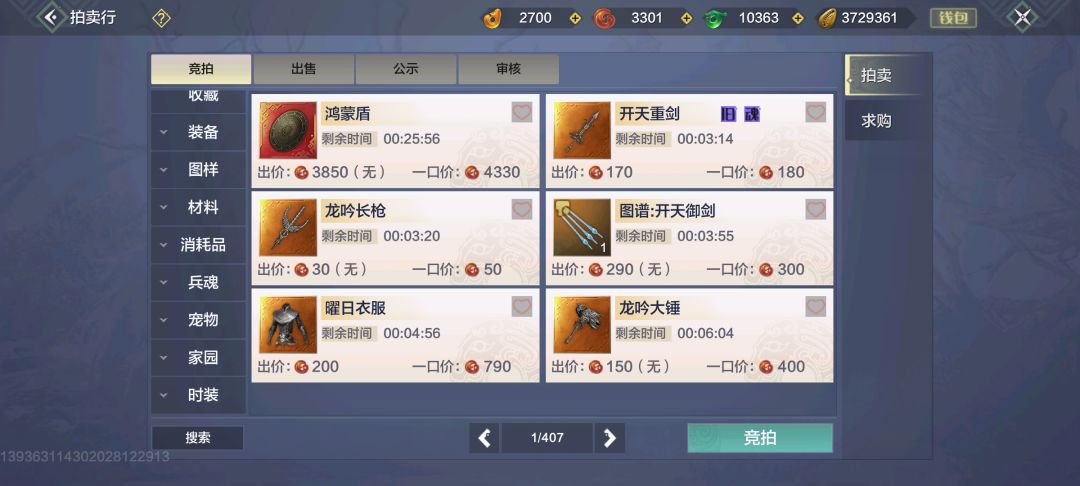 获得武器最简单的方式是在拍卖行购买或求购,不差勾玉可以买好的,没勾玉或是过渡使用也能买良器水平的,只用贝币就行了。