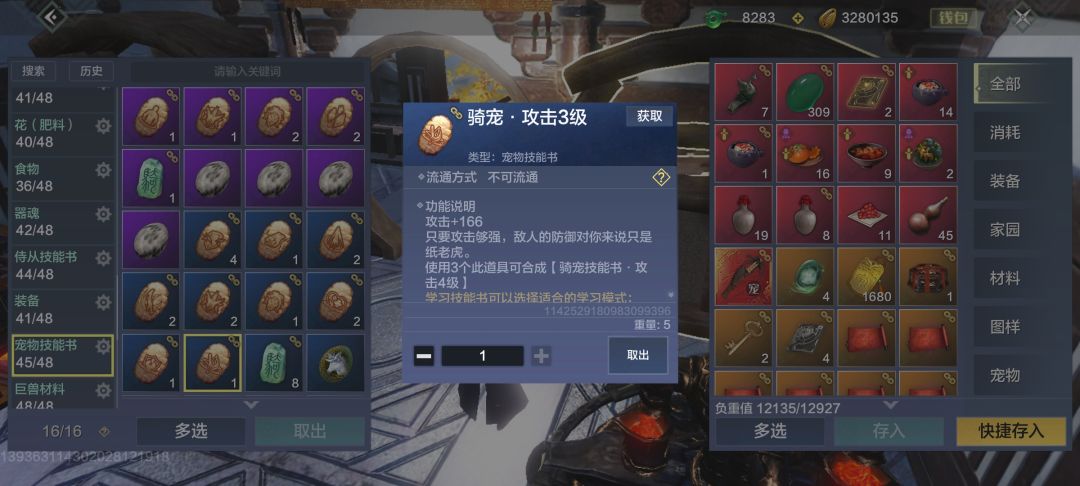 Tips:骑宠·技能汲引只能拆卸等于或低于自身等级的技能书。