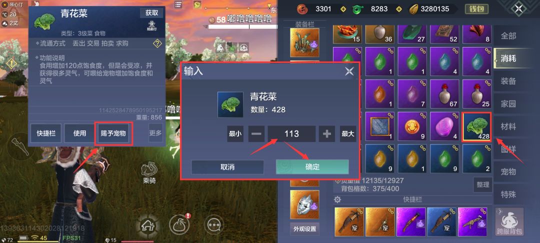 (3)宠物经验丹:赐予宠物经验丹、经验食物可以直接增加宠物经验值。注意,该提升方式快捷但不稳定,可作为补充方式进行,随缘即可。