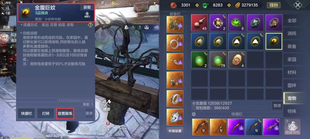 想要进阶宠物,有3个重要组成部分,服炼、蜕变、蜕变道具。