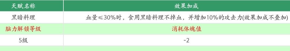 效果加成:在食用黑暗料理之后会增加10%的攻击力,在打架之前吃上一个伤害有所提升;