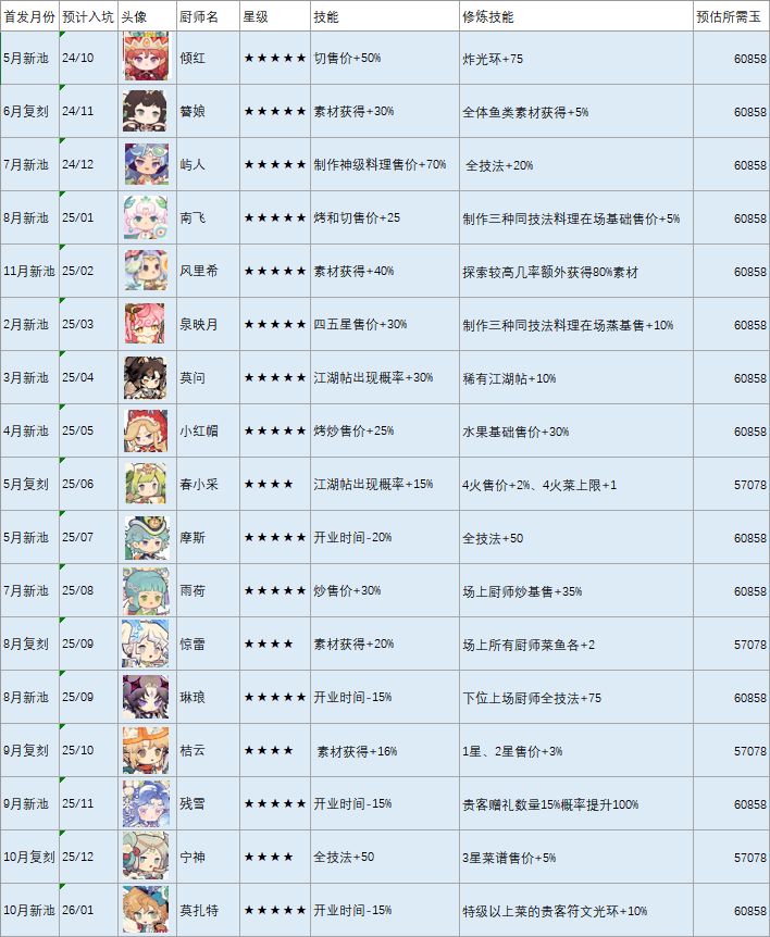 3. 除了特殊的功能厨子(贵客、时间刺客),推荐先补池把重点宴会菜拿下再考虑是否抽坑的问题,抽坑的收益远小于补池的收益!!!