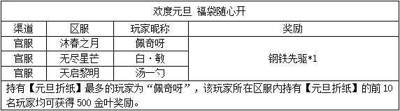 《世界OL》元旦节活动获奖名单