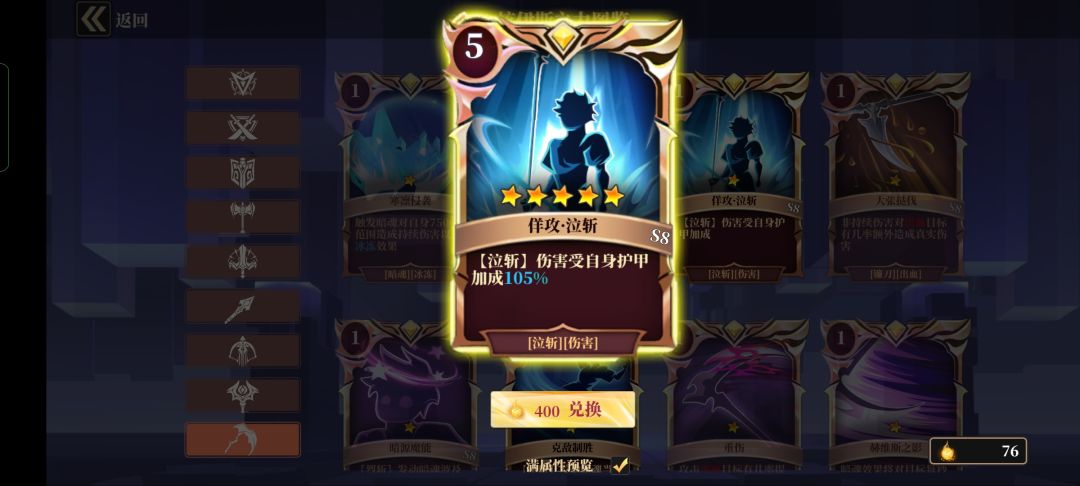 这张卡真的个人觉得是除了【佯攻·泣斩】必备的卡,决定你能不能继续输出,图片是我自己的卡,普通怪1.5秒回79血,打BOSS1.5秒回158血,然后能链接三条,总共最高就是316血