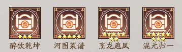 醉饮乾坤、河图菜谱、烹龙庖凤和混元归一都是增加食府赚速的资质。这里的星级倍数是23倍,混元归一是8星资质,如果派遣食府的话会额外提升80倍的赚速,烹龙庖凤是7星派遣食府也会增加30倍的赚钱,河图菜谱是5星资质,委派食府也会增加2倍的赚钱。一共就是155倍的食府赚速,委派食府的话要比派遣客栈高96倍的赚钱还是委派食府比较好。