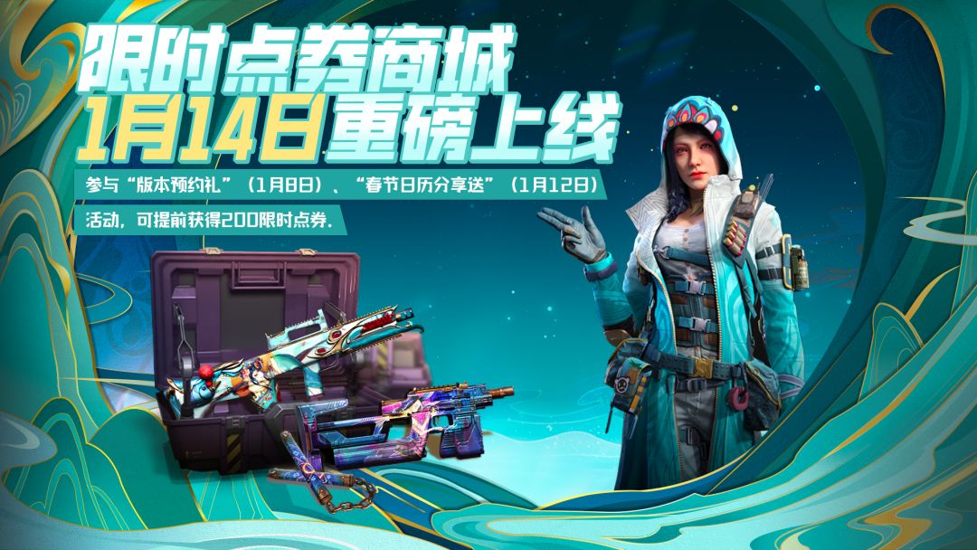 新年将至,瘦普也准备了一份福利。1月14日,限时点券商城重磅上线。战士们可以用限时点券兑换相应武器。战士们在1月8日和1月12日分别参与“版本预约礼”和“春节日历分享送”活动,可提前获得200限时点券。此外,活动首周(1月14日-1月20日)最多可领取1500限时点券,后续还有丰厚限时点券可以领取,战士们保持期待哦~