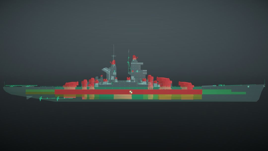 设计手法沿袭敦刻尔克-黎塞留-加斯科涅的布局,覆盖面积较高、次装完善,且装甲在排水量中的占比相当高。即使硬防护较为优秀,但其并不具备完善的次方护,且较为一般的齐射角可能会限制其在中近距离的表现