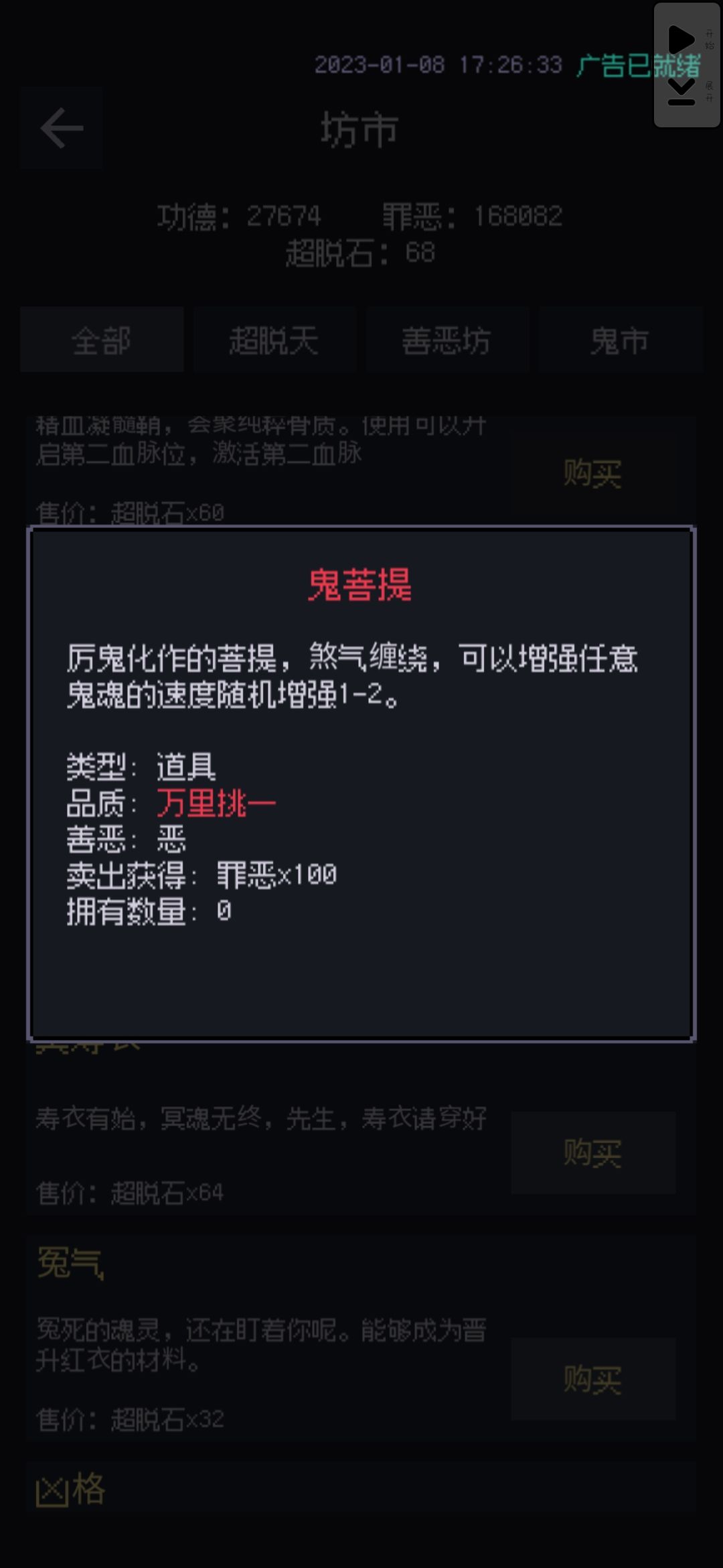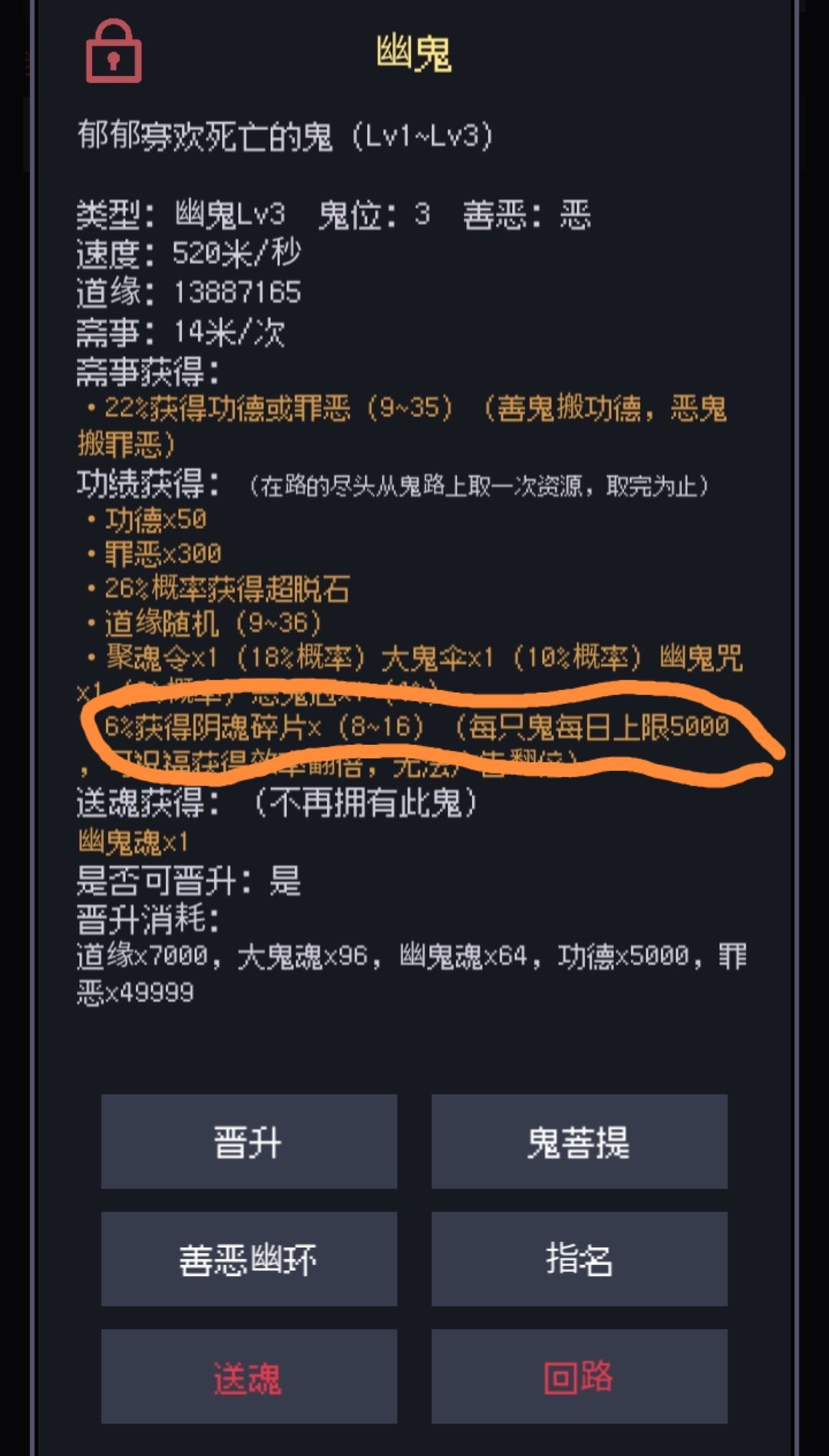这也就意味着,不必把所有的鬼菩提都堆在同一个鬼身上,理论上来说一天可以走完几百个鬼,获取的碎片卖了之后,直接获得几千万上亿的罪恶