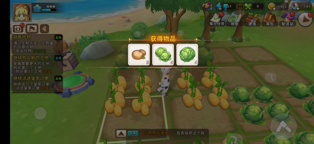 我觉得种菜好玩,种出巨大品种就更好玩了,收获是很爽的一件事。就是种菜采集方面,收获结束弹出来的那个窗口很挡着,比如我摇苹果,苹果没落到地上,那个图标就弹出来挡着,我觉得一下子就平平淡淡了,就没有大丰收的感觉了。