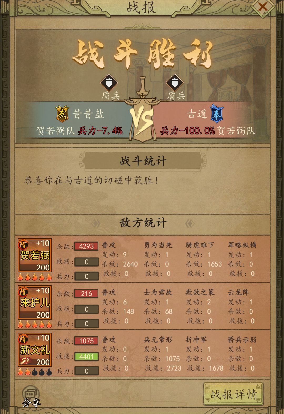 )(再多嘴一句:如果觉得自己的贺若弼已经够安全了也可以考虑带愈战愈勇和厉兵或者出奇制胜和狂暴;在对手控制不多的情况下来护儿也可以带智珠在握和卫戍)