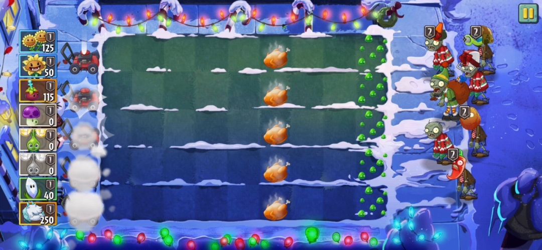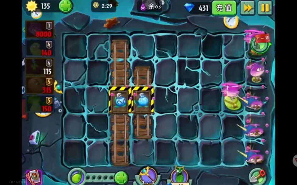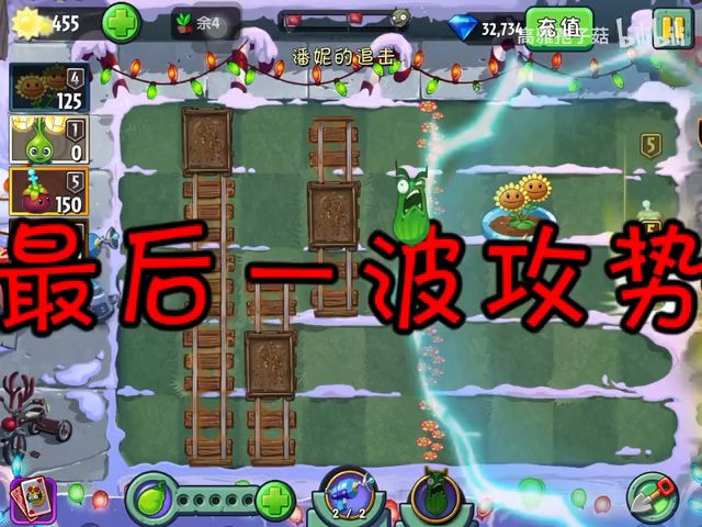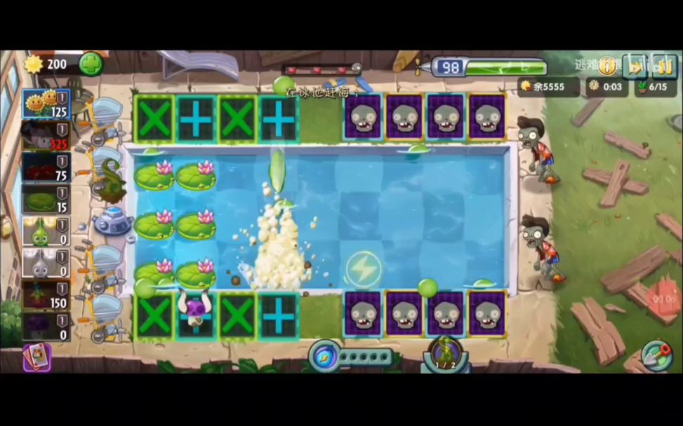 对于不需要特殊处理(包括任务或者裂缝等等情况)的自选卡速刷关,一般是在山竹冷却好之后迅速在9-3放下山竹,等山竹扩展到最大圈的时候砸黄瓜点到最后一波结束。这种关卡不多,但是碰到了话,由于操作不多,分数稳定,打起来会很舒服,基本不需要重复刷分。
