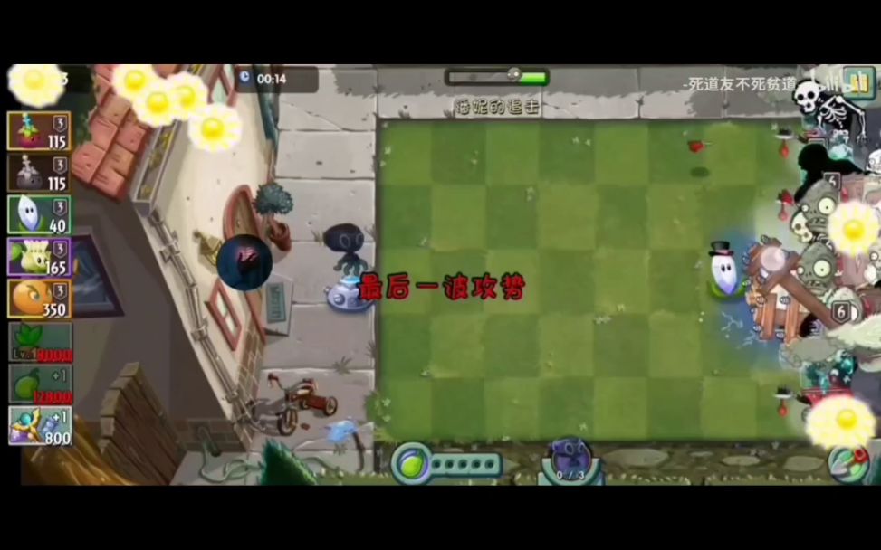 4.一些不需要在意的小知识:山竹电死僵尸会有一个电死的动画,然后有一个灰烬动画,两个时间加起来比一般僵尸的躺尸要慢,所以在追击中需要注意山竹的收尾问题,常见的是菜问拉怪后魔豆击飞处理灰烬。而在目前的3.0.0版本中,僵尸不需要躺尸即可结算,收尾的技巧便只当做历史了解一下即可。