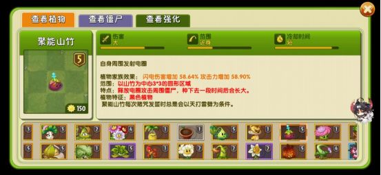 3.大招是山竹的核心。大招:以自身为圆心扩大一道半径为三格的圆形闪电,对范围内的僵尸造成600*(1+植物阶数)的伤害,(1阶山竹1200,4阶山竹3000,5阶山竹3600,这些较为常用)