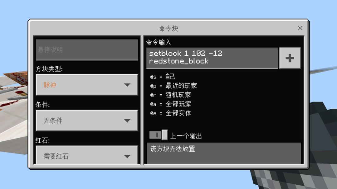 想要在这放个红石块的指令