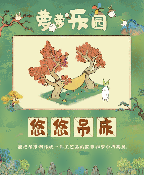 萝小巧的吊床制作工艺十分高超,是它近乎偏执的匠心之作。因此,吊床小憩也成为自己忙碌生活中最愉悦的时光。即便是如此,萝小巧依旧想要逃离不上不下的自己。追求完美是它永恒的目标。