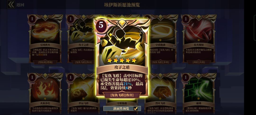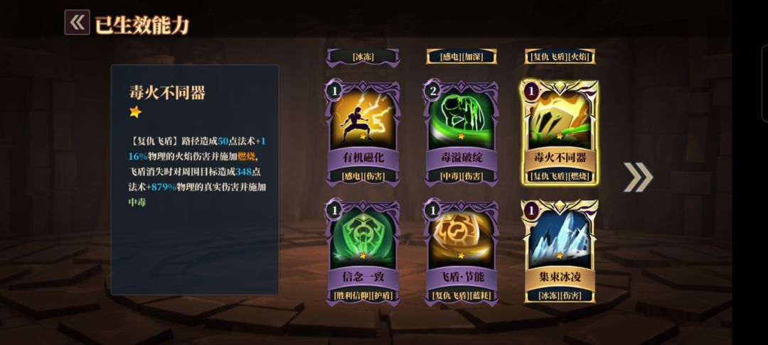 2、复仇飞盾可以带动很多的伤害卡片、持续伤害、物理伤害、法术伤害,等;也起到带动伤害的效果。