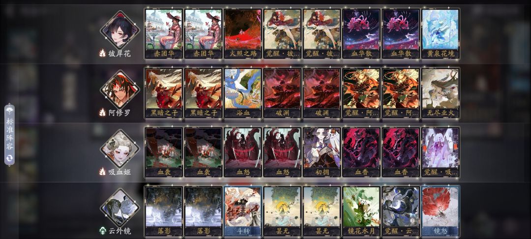 4、花修。这套谈不上极端快攻,更多的是徐徐图之。凭借花修天胡的高数值强度以及云外镜三勾的可能性,能在追岳的阴影下偷鸡。