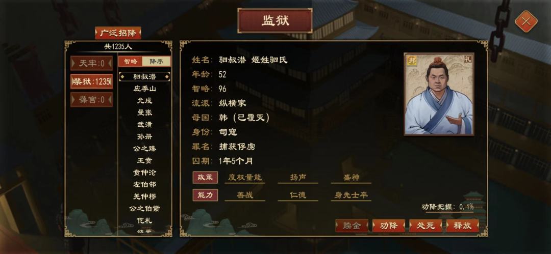监狱内的囚犯也可以用于我国,在监狱中操作“劝降”,有一定几率可以招到心仪的人才