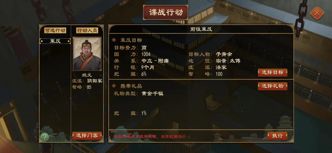操作路径:【禁府-谍战行动-策反】【他国界面-外交-策反】
