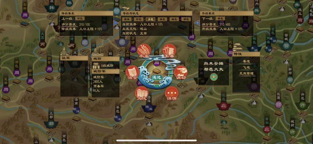 而在城邑中,除了任命都邑大夫需要人才外,督建城防、迁移人口也需要人才,各位玩家可以根据城邑位置、国家状况等因素,合理安排人才执行
