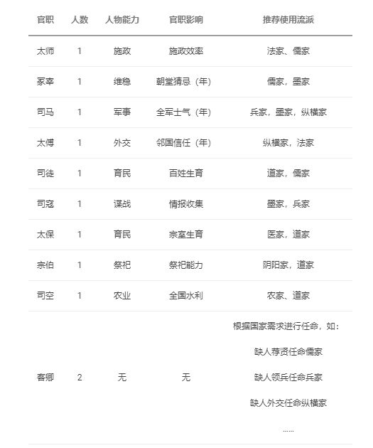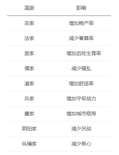 不同流派的人才担任都邑大夫,将对城邑产生不同的正面影响,人才属性越高,影响程度越大。可以根据城邑所需,安排对应流派的都邑大夫