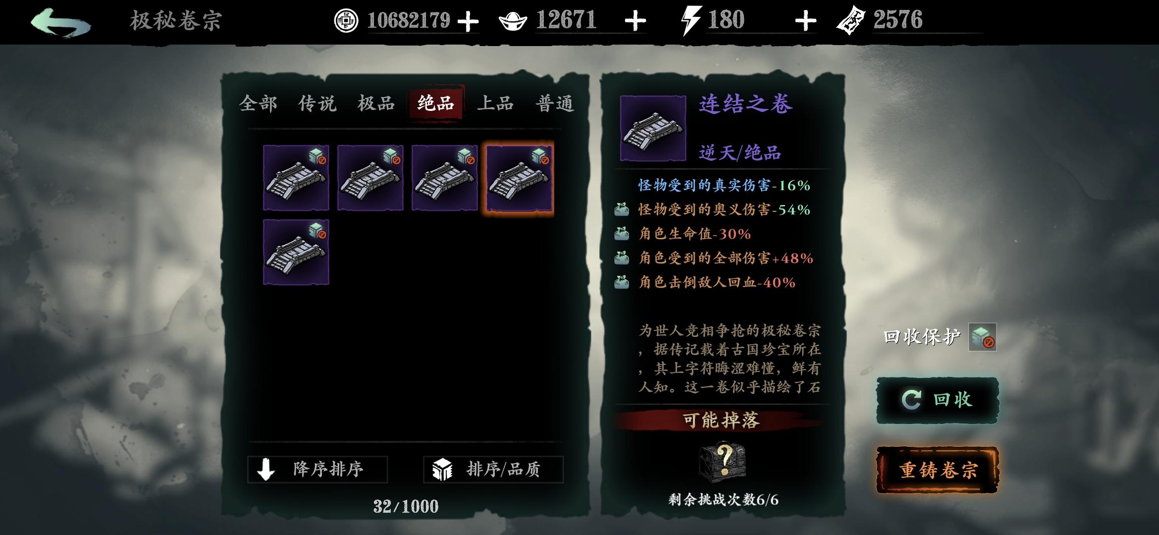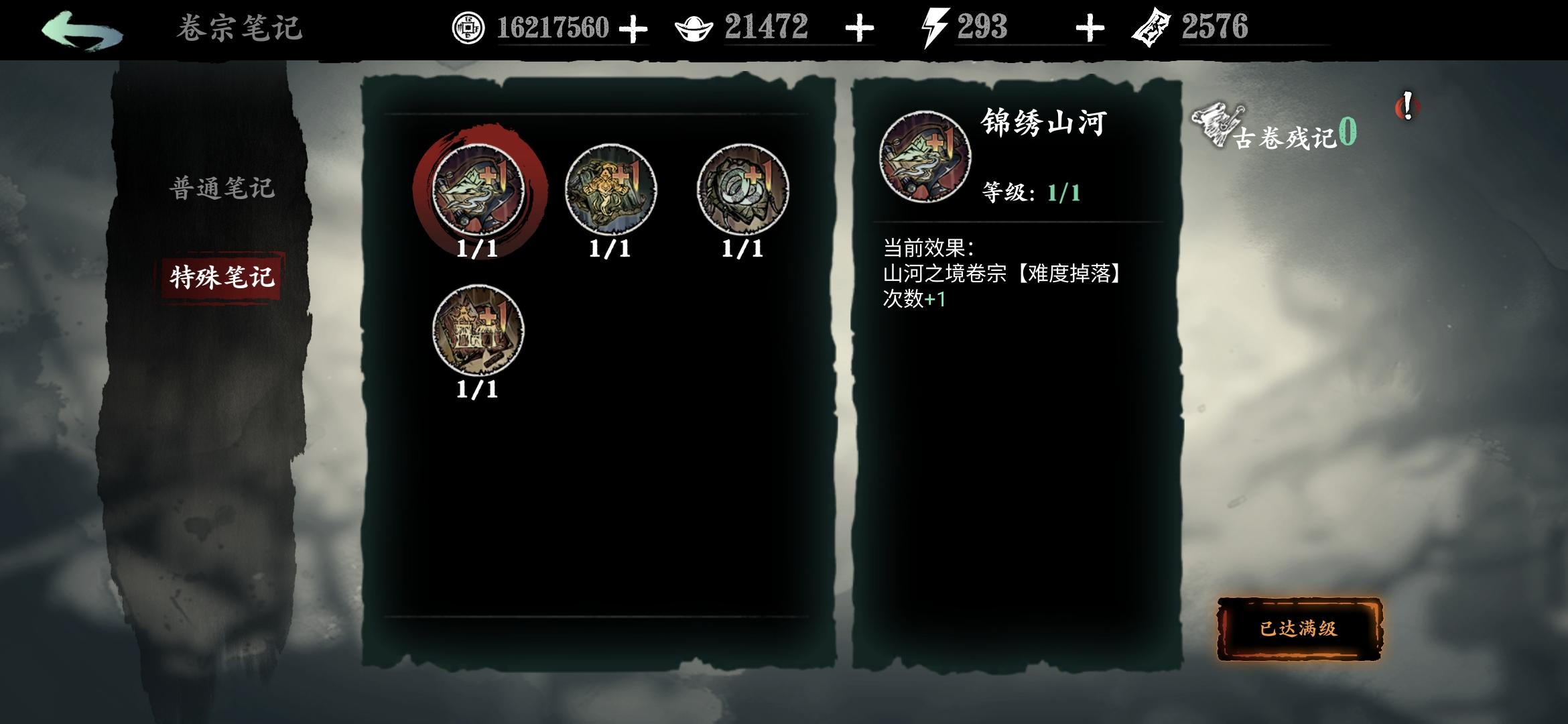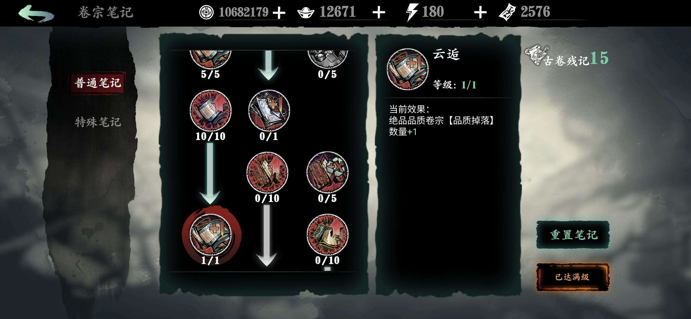 分享一个常用笔记点法,可以让传说和极品逆天卷子变凐灭,缺币分解卷子时重新点笔记(卷宗回收时获得的残页)点满。